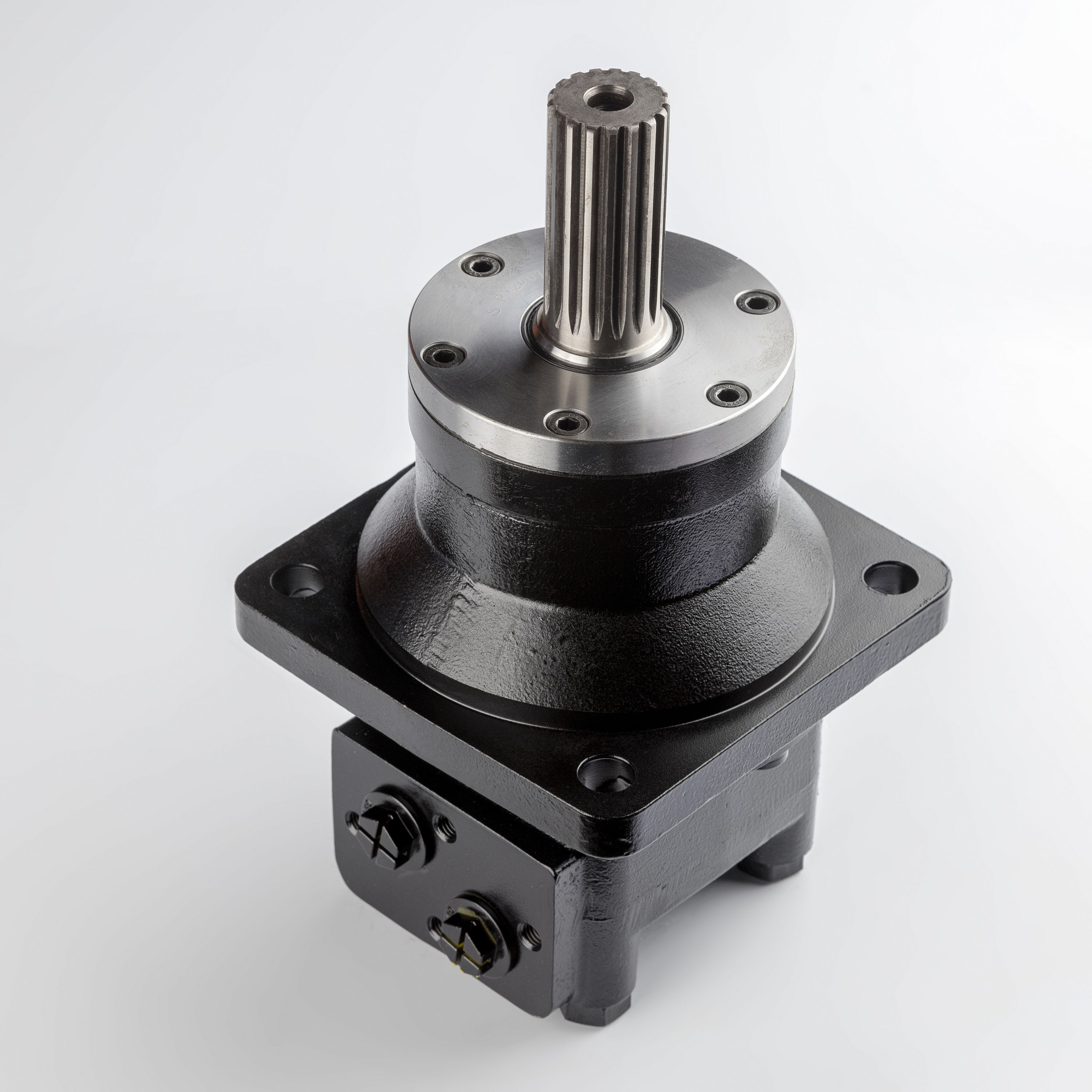 Диапазон частоты вращения варьируется от минимальных 9 до максимальных 625 об/мин при расходе жидкости до 125 л/мин. Реверсивное направление вращения расширяет функционал оборудования, позволяя использовать мотор в лебедках и поворотных механизмах. Шлицевой вал диаметром 38 мм (стандарт DP 12/24) гарантирует жесткую фиксацию и надежную передачу крутящего момента без риска среза шпонки.