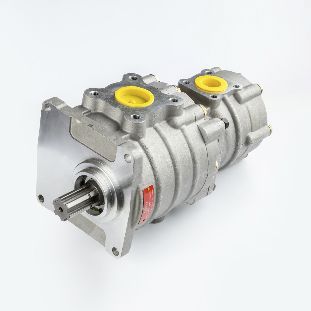 Данный насос объединяет в себе две секции с рабочими объемами 100 см³ и 50 см³. Такое сочетание оптимально для машин, где требуется разделение потоков: например, основная секция (100 см³) отвечает за работу мощного навесного оборудования (ковша, стрелы, манипулятора), а вторая (50 см³) обеспечивает функционирование рулевого управления или вспомогательных механизмов.