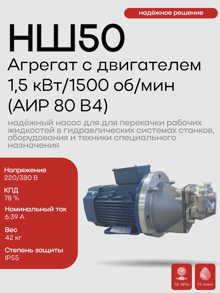 НШ 50 Агрегат с двигателем 1,5 кВт / 1500 об/мин АИР 80 B4
